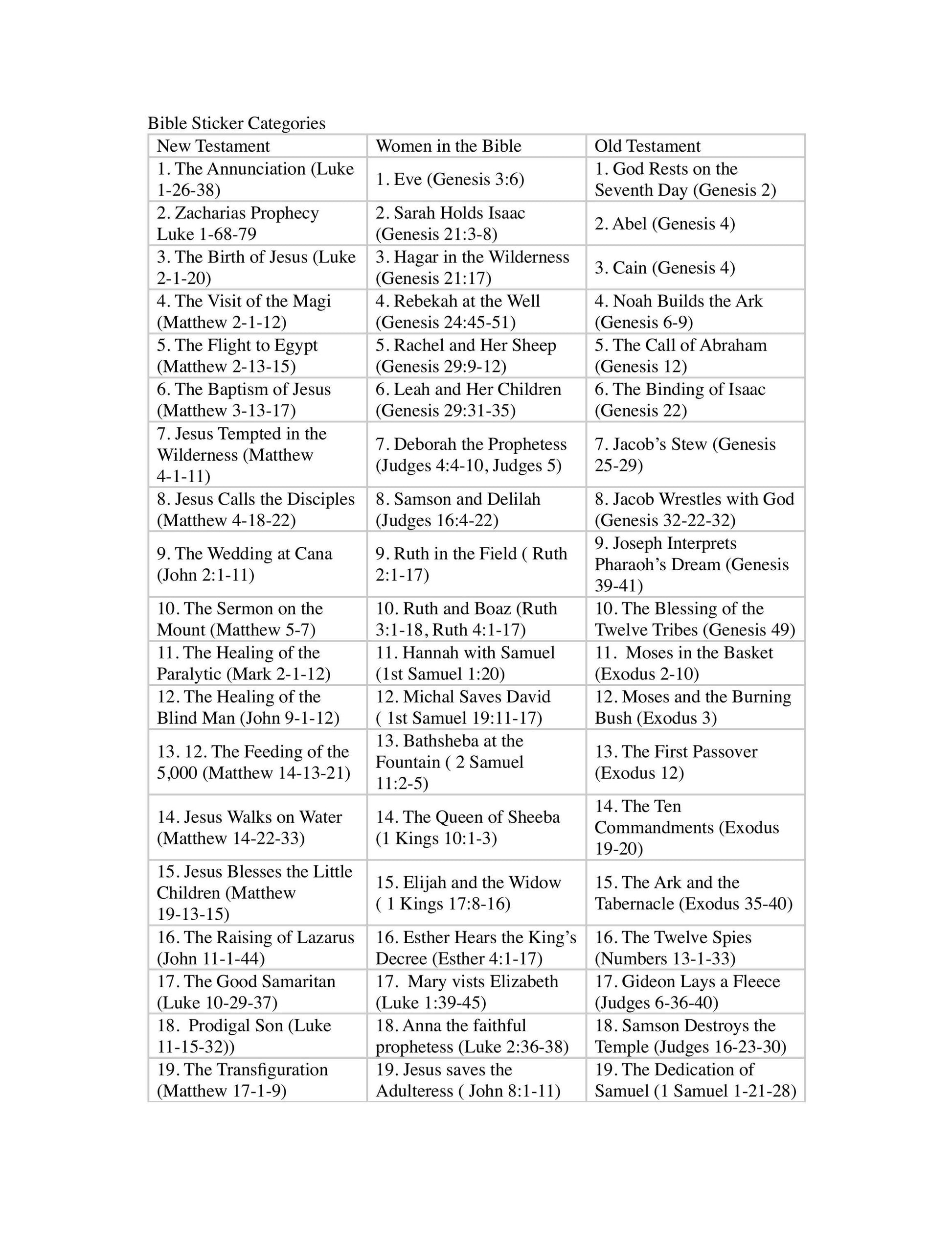 π Women in the Bible Stickers β 2 pages of carefully selected scriptures